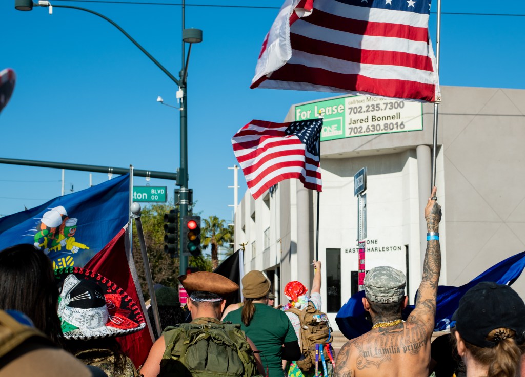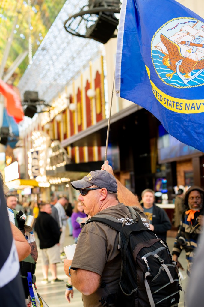 As the group of veterans trekked through the bustling Freemont Street and Arts District, they were met by curious onlookers and supportive tourists visiting the city. Hike attendees belted out songs, held conversations, and shared laughs along the route, contributing to the relaxed yet lively event.