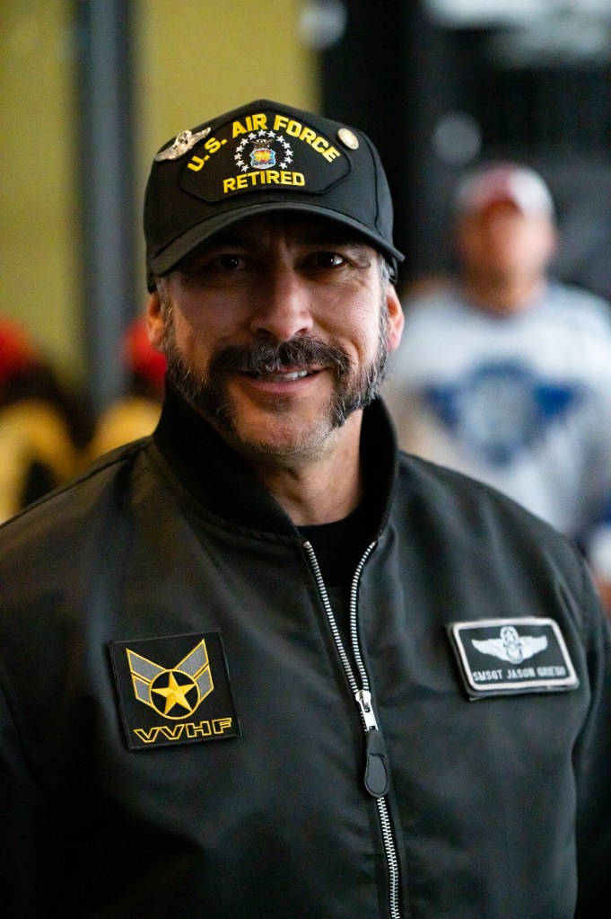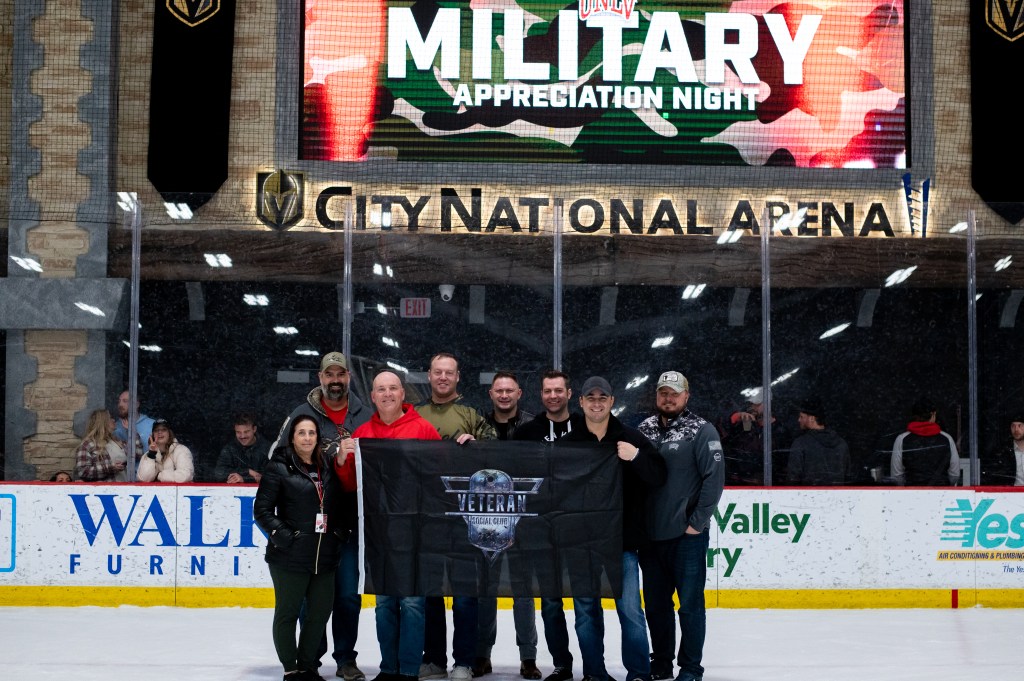 Jason Griego, founder of the Vegas Veteran Hockey Foundation, and TJ Henderson, founder of the Veteran Social Club, were present to drop the game puck and join in the event.